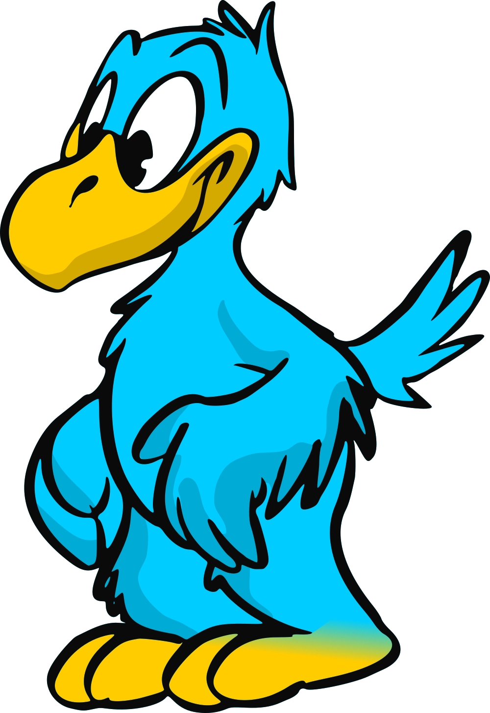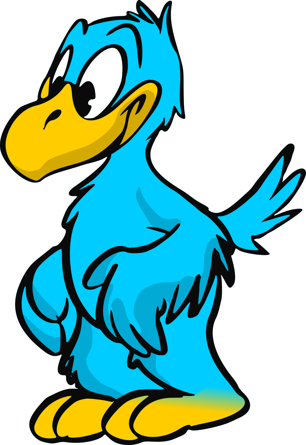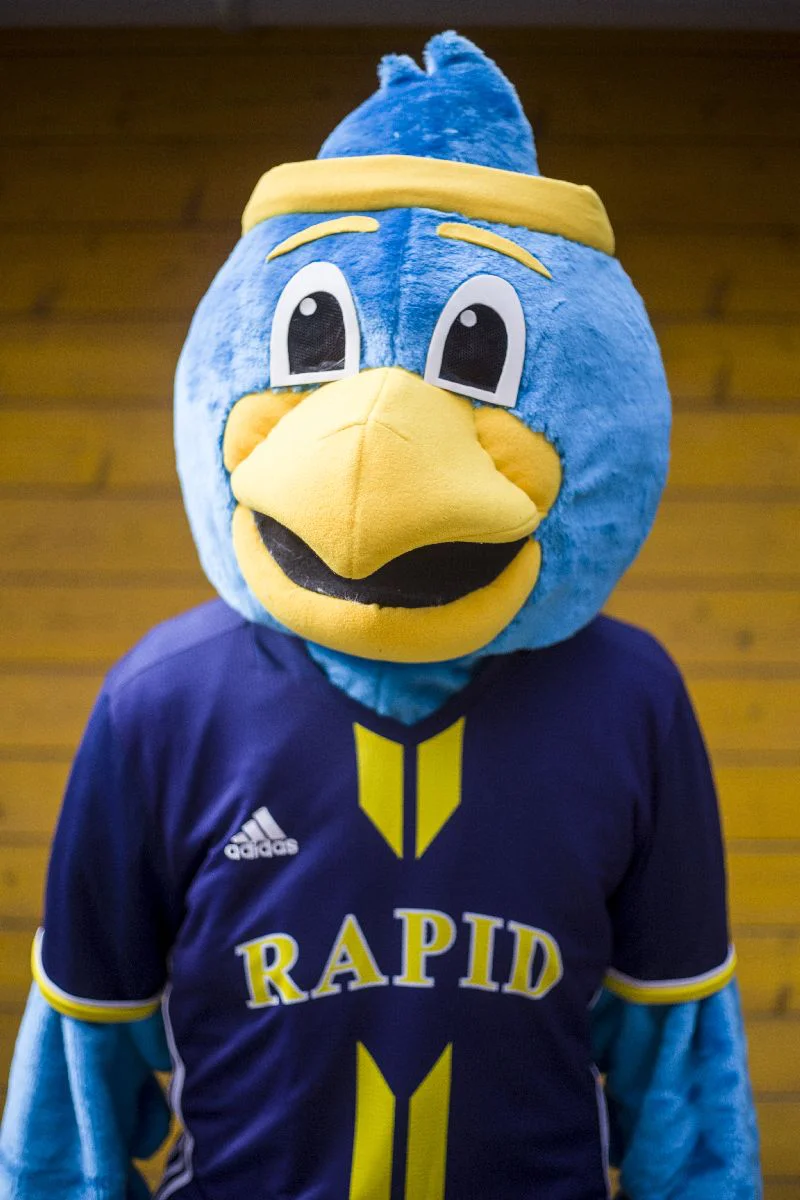 Damit war klar ein Adler soll es sein. Ein Seeadler in Schleswig-Holstein als König der Küstenwinde sollte es sein. Auch die Farbgebung war schnell klar. Statt dem üblichen braunen Gefieder sollte der Rapid-Adler allerdings die Vereinsfarben blau und gelb beinhalten.Gelb war dort schnell untergebracht hat der natürliche Bruder doch auch einen gelbliche Schnabel und Krallen. Somit musste das Gefieder dann blau werden. Zum gelben Schnabel gesellten sich dann noch gelbe Augenbrauen und ein gleichfarbiges Stirnband.